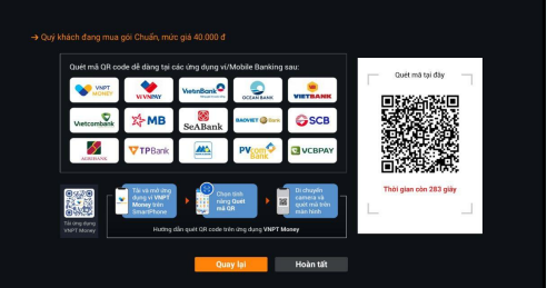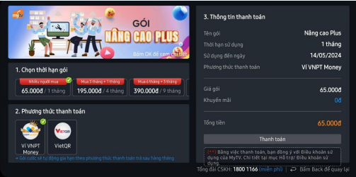 Khi thanh toán thành công, ứng dụng thanh toán sẽ trừ tiền từ tài khoản của Quý khách hàng và hệ thống MyTV sẽ tự động mở gói cước.